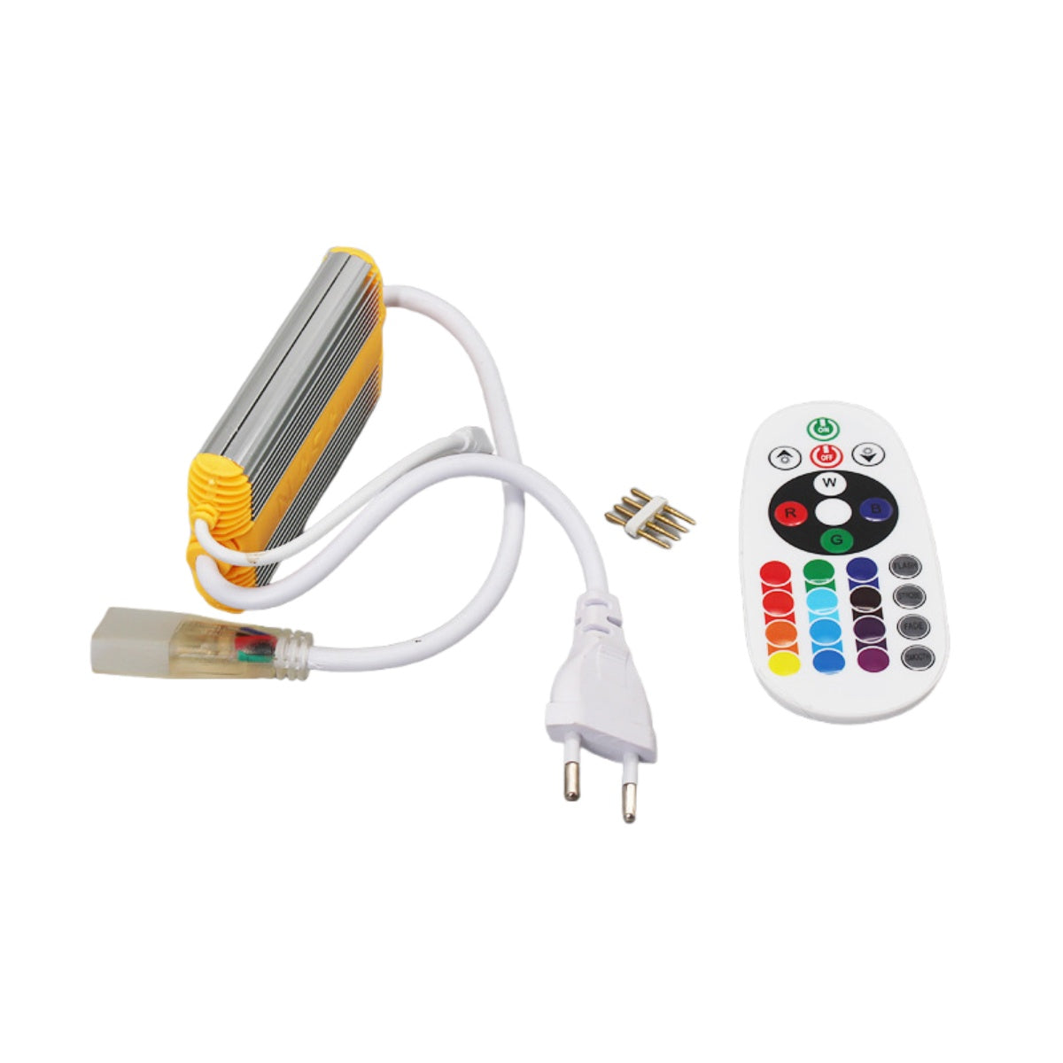 | 1 Roll × 100 m (328 ft total) | * 100M Roll AC110V / AC220V RGB Neon LED Strip Light X1 * RGB Controller X1 * Mounting Clips X 100, Screws X 100 |