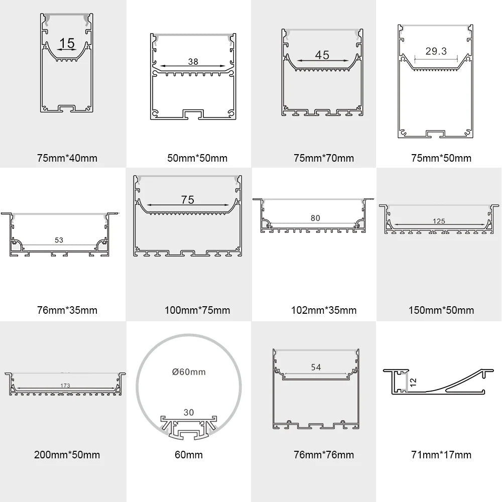 | 1 Meter × 10-Pack | 10 × 1m H15050-B Extruded Aluminum Channel 10 × 1m H15050-B Milky White Diffuser (cover) 10 × End Cap 20 × Spring Bracket |